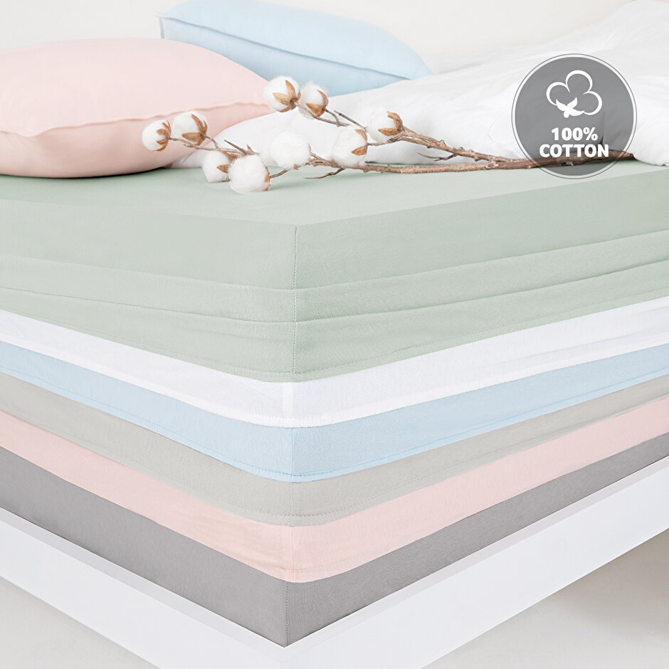 Offering a modern look with its simple elegance, Lupa Soft Fitted sheet creates a rich decorative effect with 6 different color variants: beige, white, powder, sage, ice blue and gray.